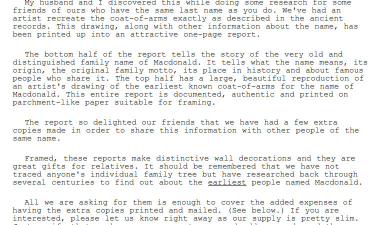 If his name were Smith, it might be a different story… but I guarantee Mr. Macdonald has never received a personally addressed, promotional letter.